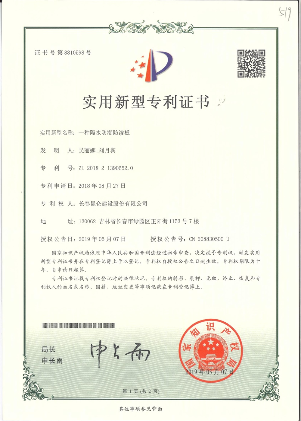 专利证书