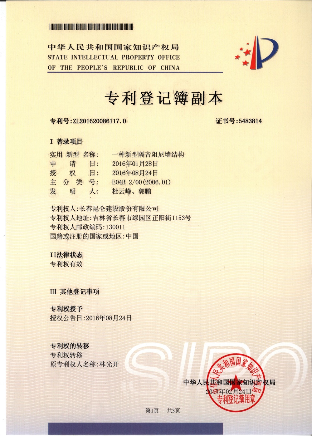 专利证书